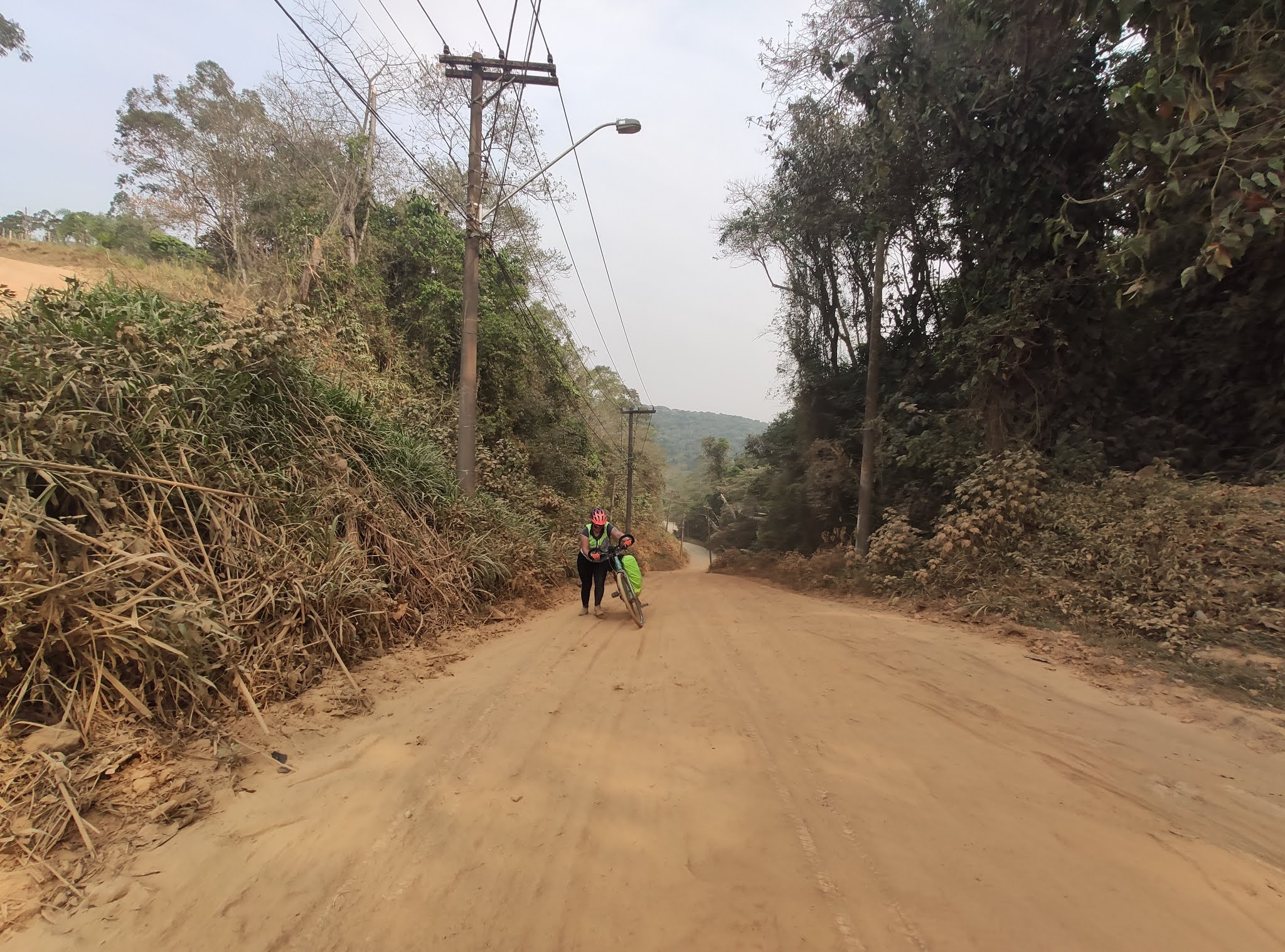 Muita subida e muito pó na estrada